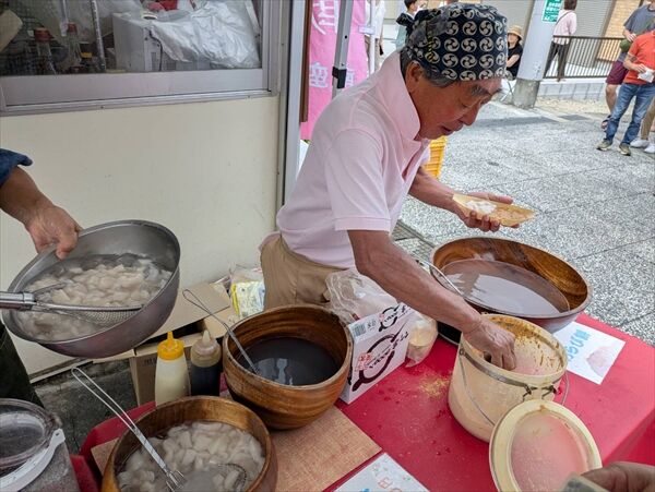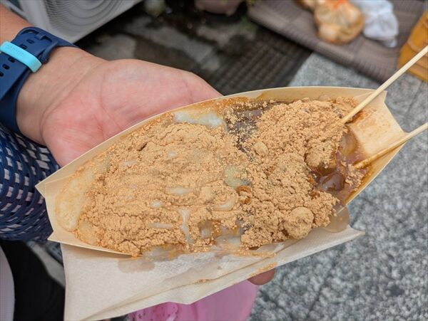 7時過ぎに到着したのですが市営駐車場は満車、狙いのわらび餅店は30人くらいが並んでいました。