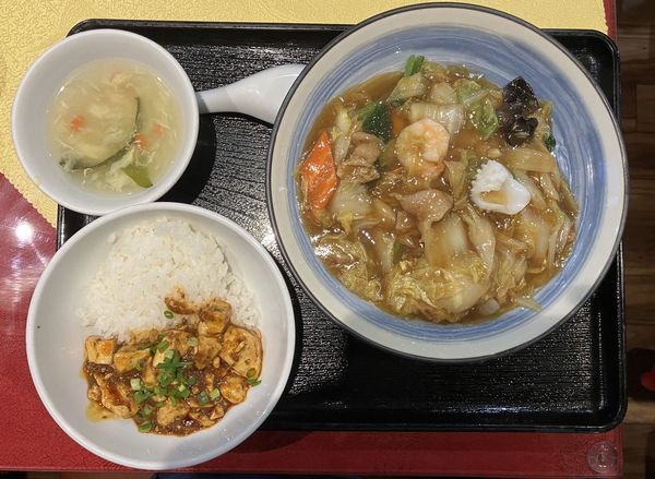 四川料理 神田 天府の「五目焼きそば、半麻婆飯」950円