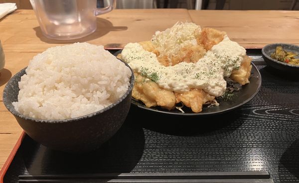 チキン南蛮タルタル定食は神田の「てけてけ」って店です💪ご飯大盛りで1000円‼️